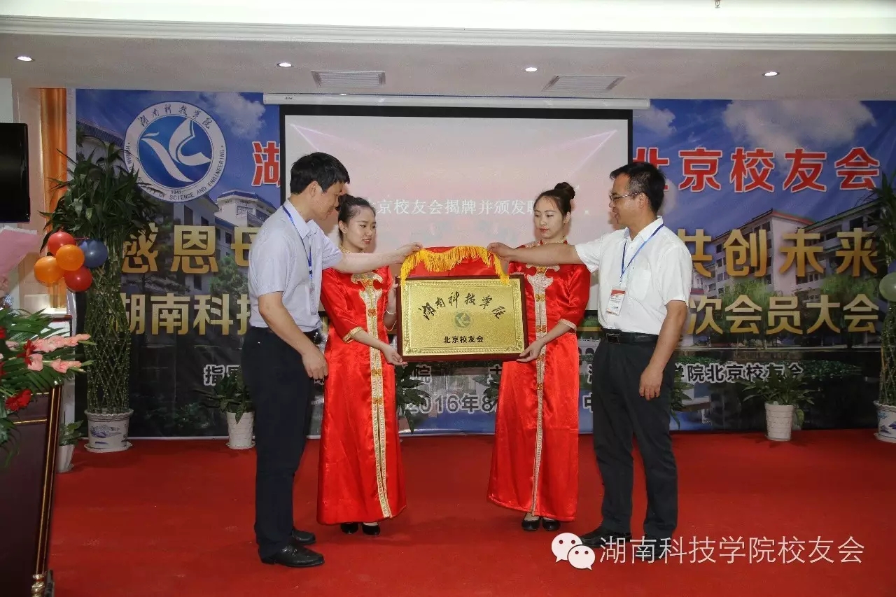 8月20日09:30-14:30,湖南科枝学院北京校友会第二届一次会员大会在北京交城山饭店一层宴会厅隆重召开。会议以“感恩母校,携手北京,共创未来”为主题。参会人员包括beat365中文官方网站党委书记陈弘教授,校长、校友总会会长曾宝成教授,党委副书记、校友总会常务副会长唐艳明教授,党委委员、副校长吴小林副教授,校友总会办公室主任张恒俊教授,副主任沈国强教授,综合干事罗一洋老师,还有特邀参加的长沙校友会副会长兼秘书长何学治、东莞校友会秘书长张伟驰、杨民政,以及在京各界校友共130余人。