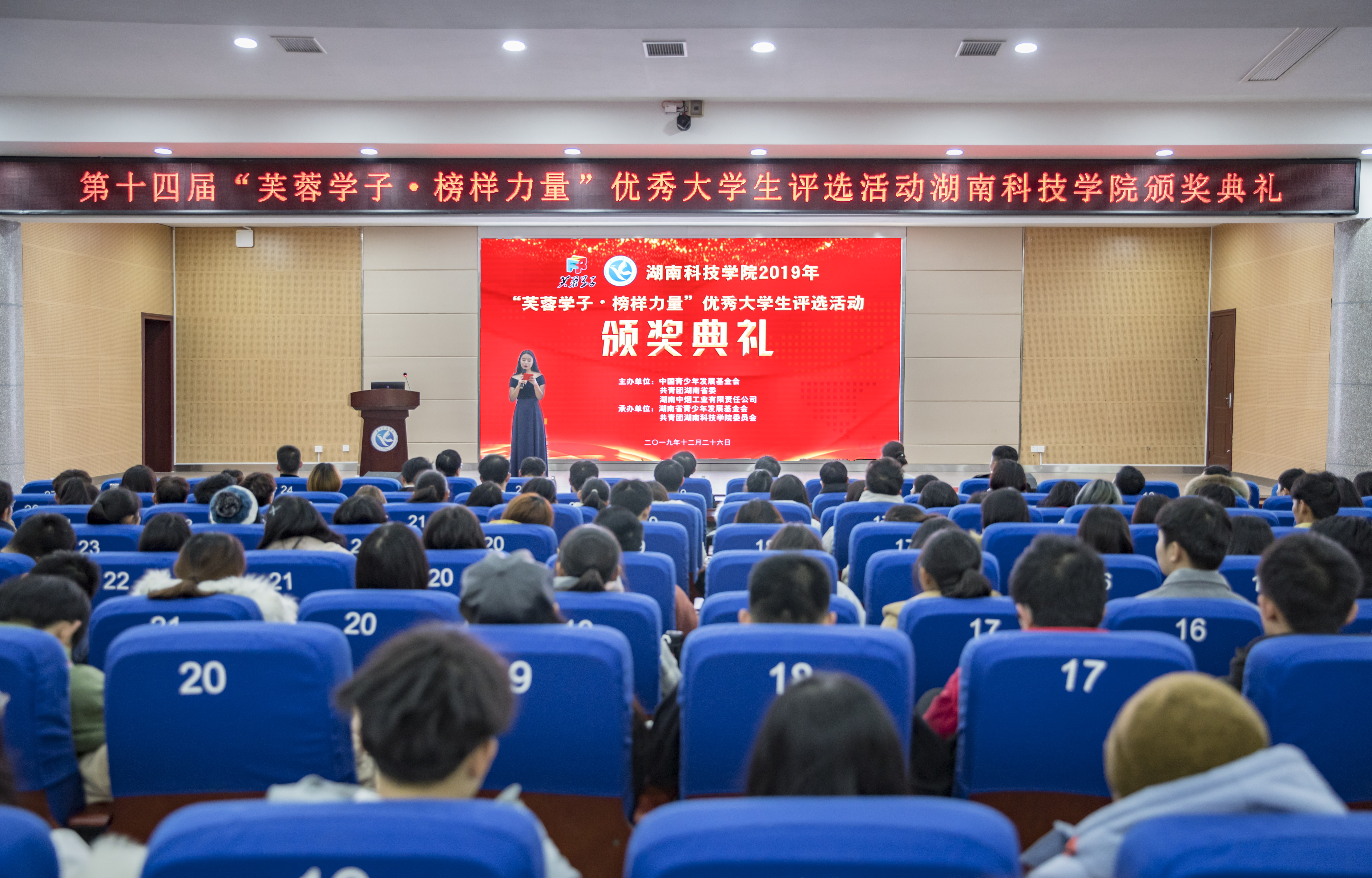 12月26日晚,第十四届“芙蓉学子·榜样力量”beat365中文官方网站优秀大学生评选活动颁奖典礼在潇湘大讲堂举行。副校长吴小林,宣传统战部、学工部、教务处、科技处、团委、就业创业指导中心等职能部门负责人及600余名学生代表参加。
