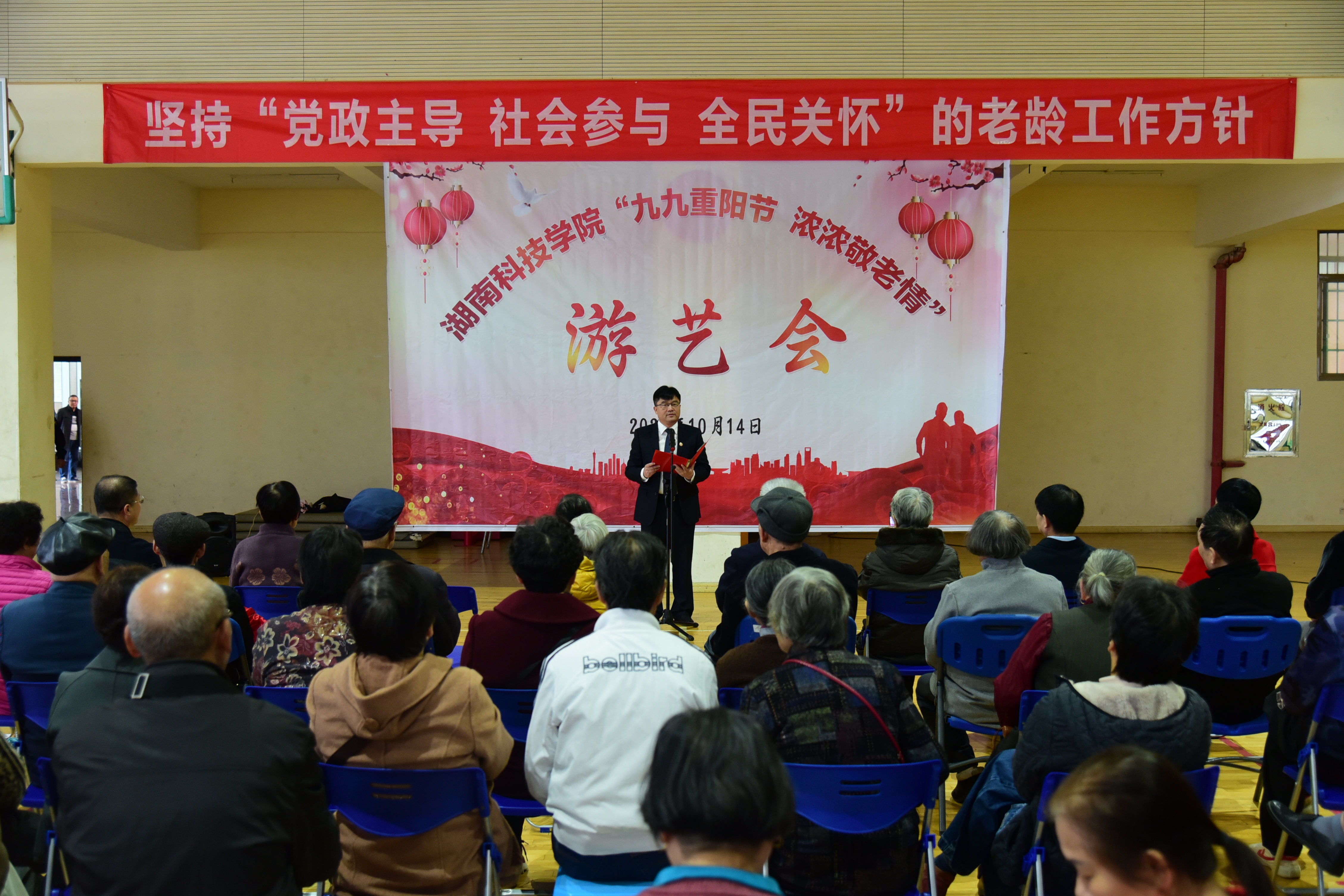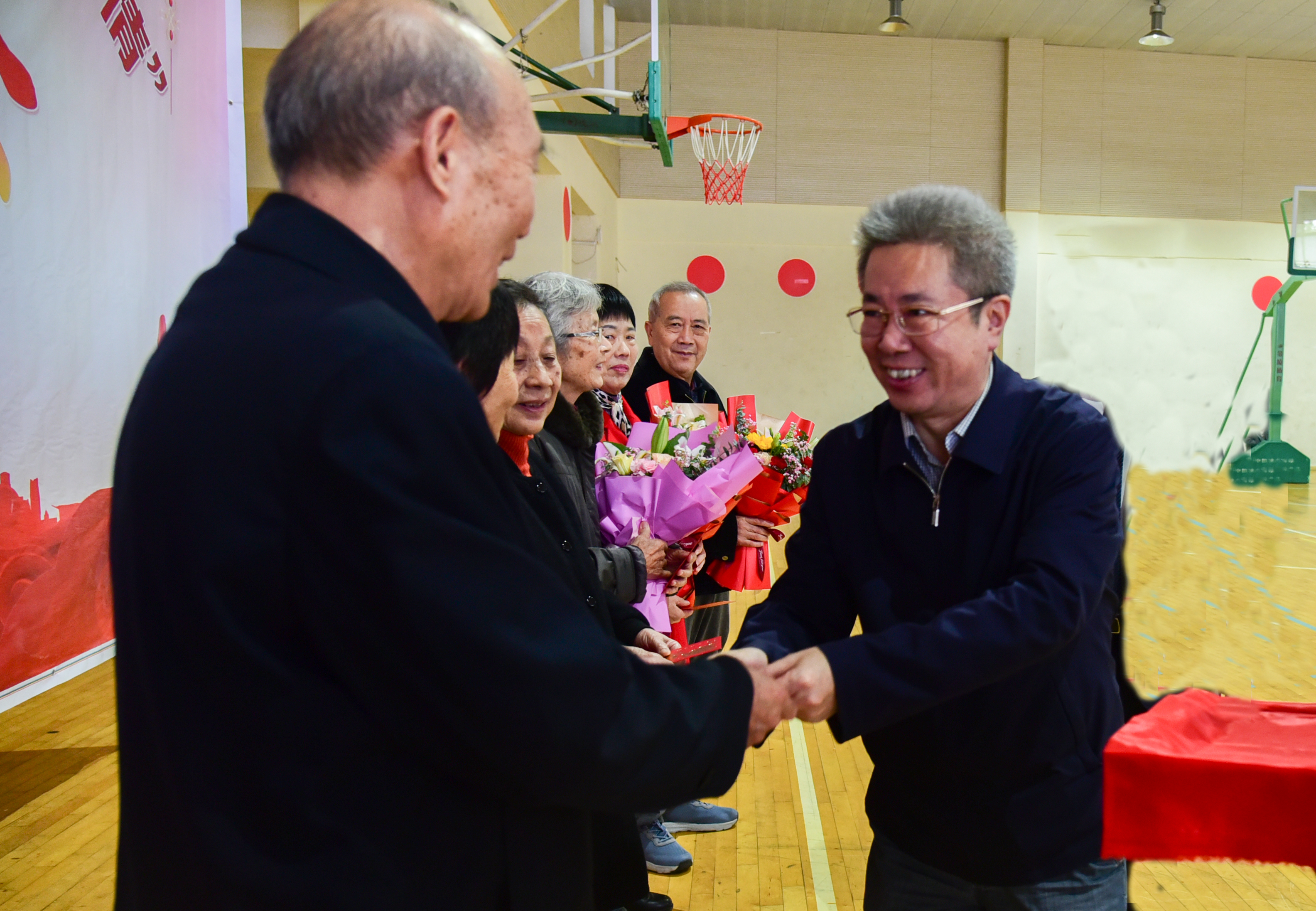 本网讯(记者 黄宇莹)菊暖花开踏秋归,重阳黍香酒初熟。10月14日,学校在训练馆篮球场举行“九九重阳节 浓浓敬老情”游艺会。党委书记曾宝成,校长李钢,副校长李常健来到活动现场,为老同志们送上诚挚的祝福。