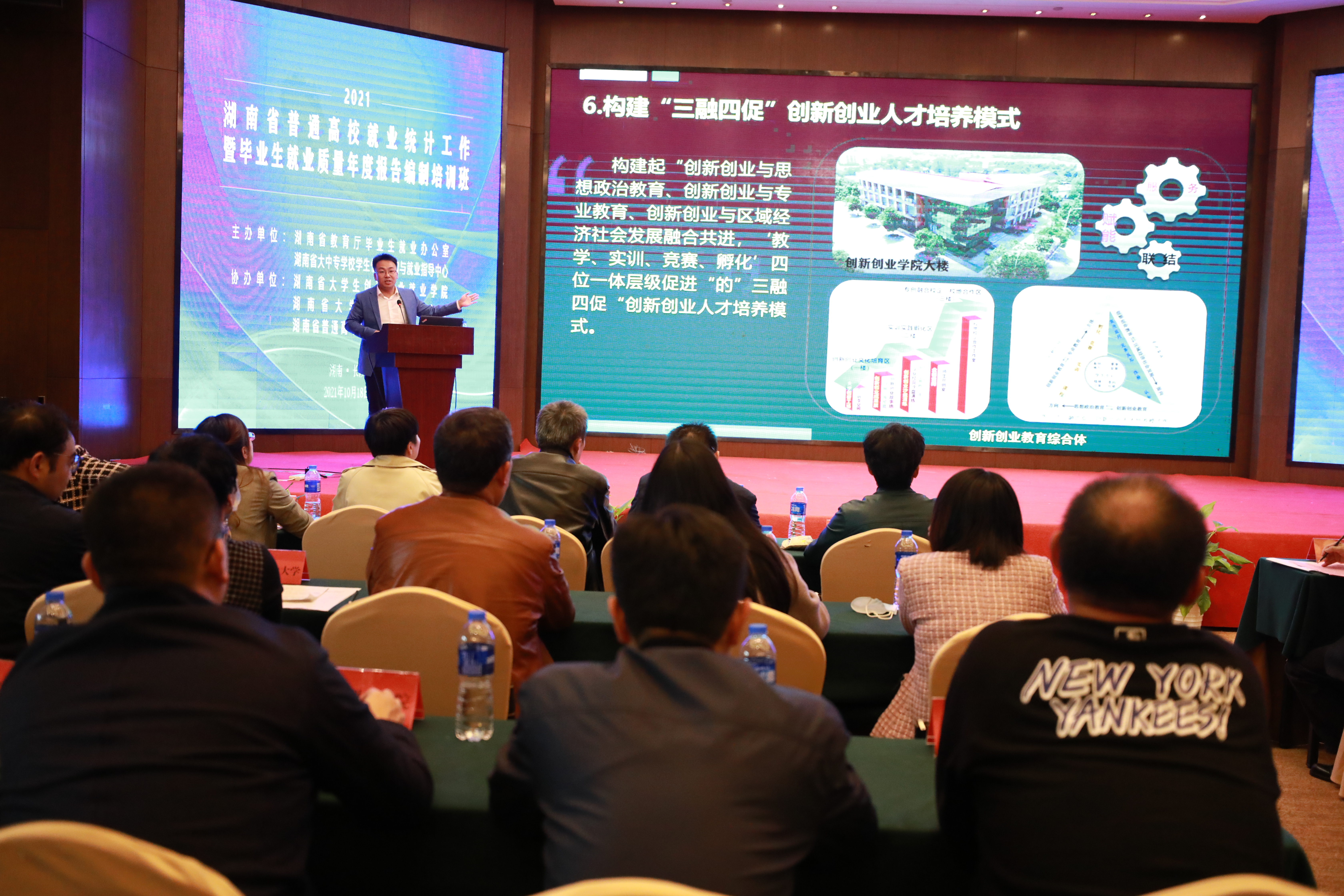 本网讯 10月18日,2021年湖南省普通高校就业统计工作暨毕业生就业质量年度报告编制培训班在长沙举行。全省100多所高校的就业工作相关负责人参加了会议。beat365官网应邀做了经验交流发言。
