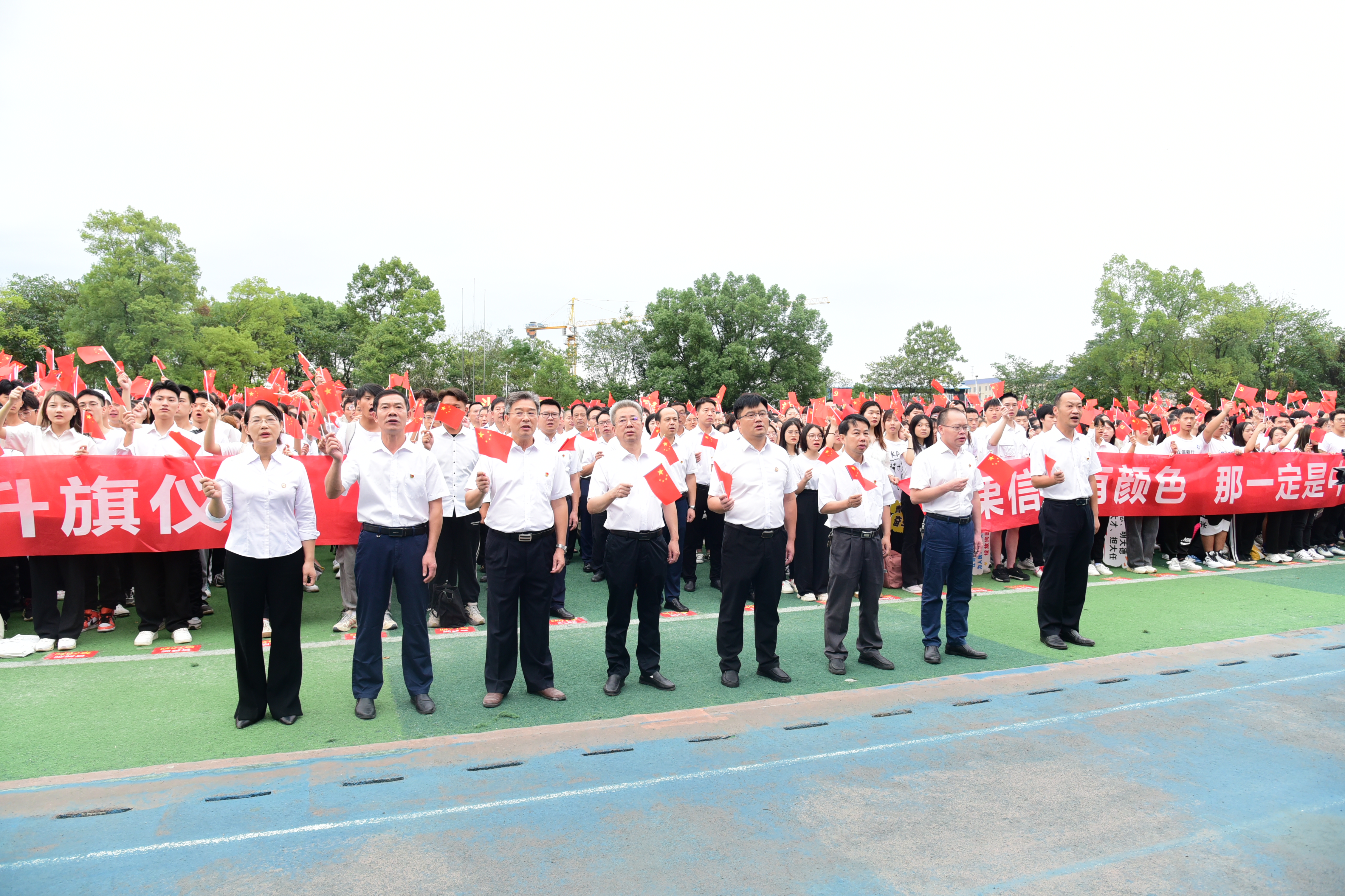 本网讯(记者 黄彩燕)9月30日清晨,学校举行万人升国旗仪式,全体师生齐唱《歌唱祖国》。党委书记曾宝成,党委副书记、校长李钢,校领导宋宏福、李常健、吴小林、何福林、郑银芳、何海,党委委员组织部部长杨涛出席仪式。升旗仪式由党委副书记、校长李钢主持。