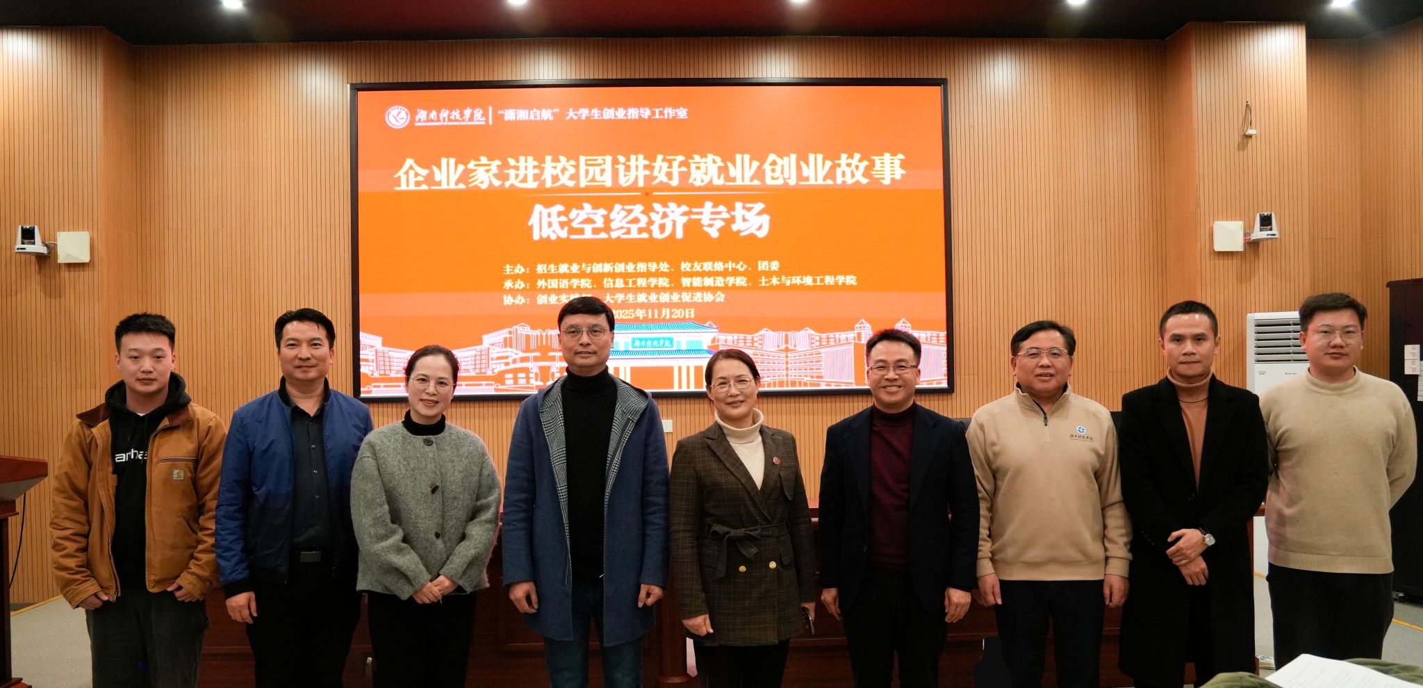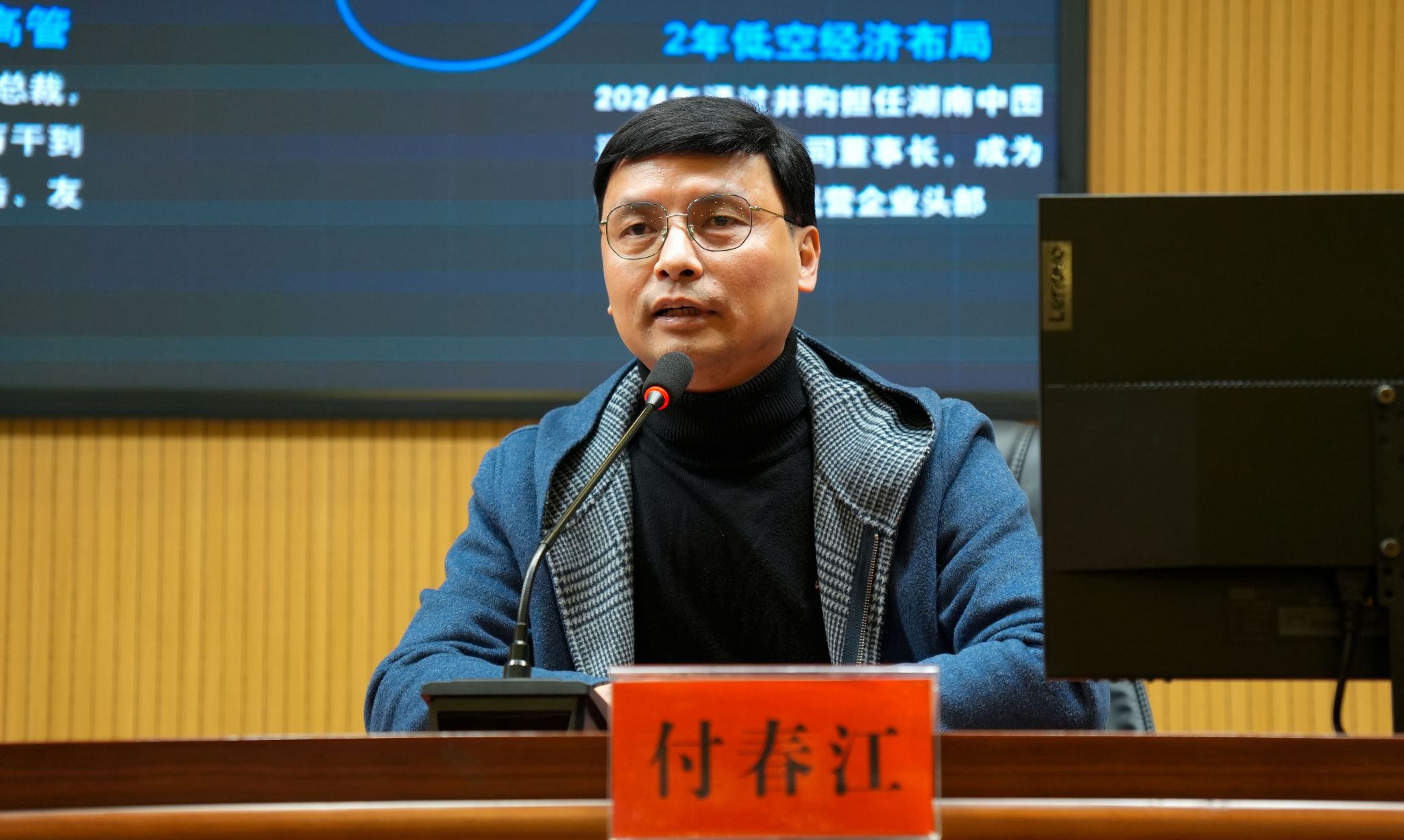 本网讯(记者 彭晥君 通讯员 周忠夏)11月20日晚,学校举办“企业家进校园讲好就业创业故事”低空经济专场活动,特邀1990级政史系优秀校友、湖南中图通低空科技公司董事长付春江返回母校开展“别飞太高,低空也很精彩”的专题讲座。副校长郑银芳出席活动。活动由招生就业与创新创业指导处、校友联络中心、校团委联合主办,由外国语学院、信息工程学院、智能制造学院、土木与环境工程学院承办,“潇湘启航”大学生创业指导工作室、创业实践部、就业创业促进协会联合承办。