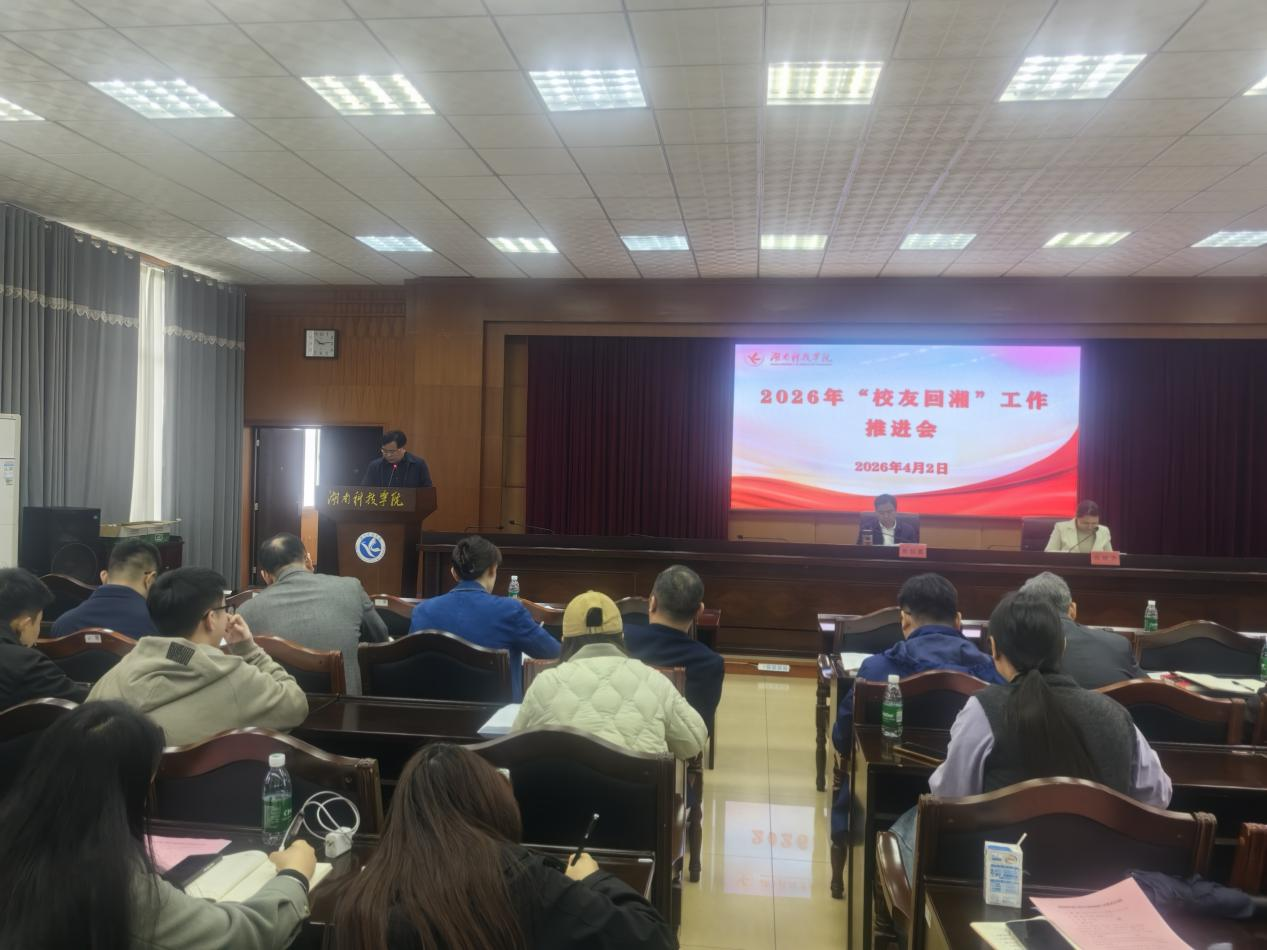 4月2日,beat365官网召开2026年“校友回湘”工作推进会。会议旨在深入落实全省高校“校友回湘”工作视频调度会议精神,进一步凝聚校友力量,服务学校与地方经济社会高质量发展。校党委副书记、校长黄创霞出席会议并讲话,副校长郑银芳主持会议。各教学学院党总支书记、校友工作联络员及校友联络中心全体工作人员参加会议。