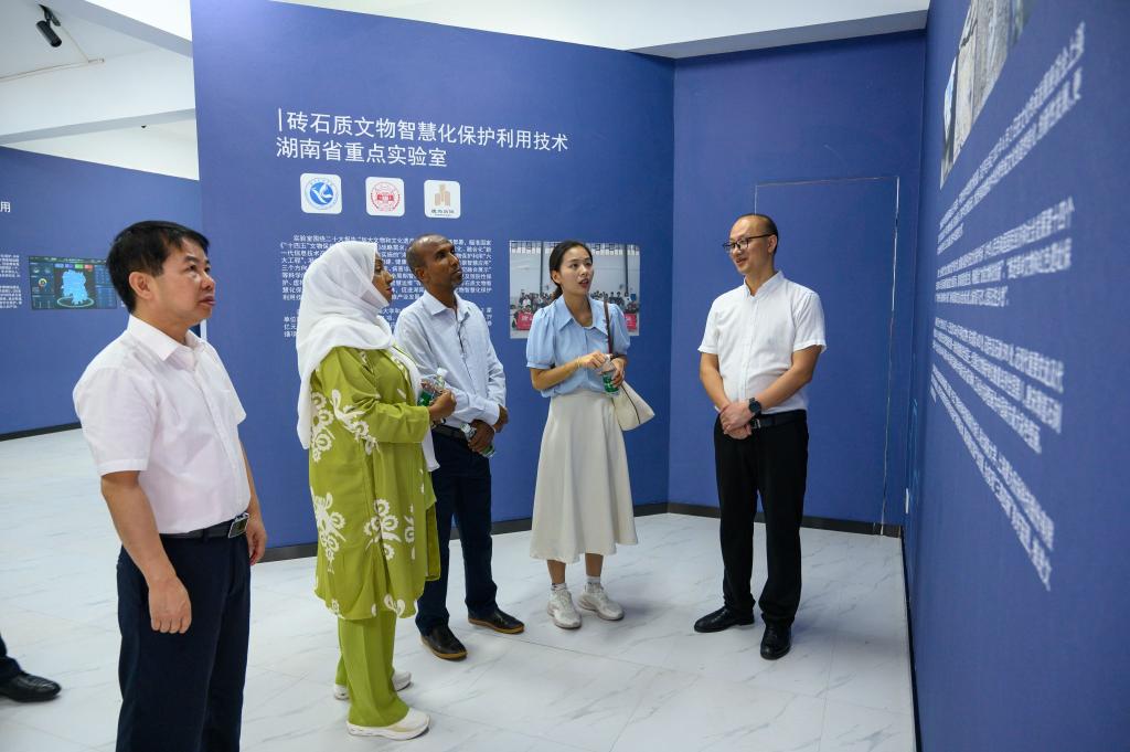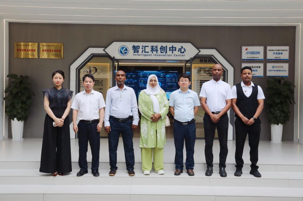 奥萨曼・哈马德・马哈茂德一行先后考察了学校工程训练中心、砖石质文物智慧化保护利用技术湖南省重点实验室、航空模拟仓和智汇科创中心。