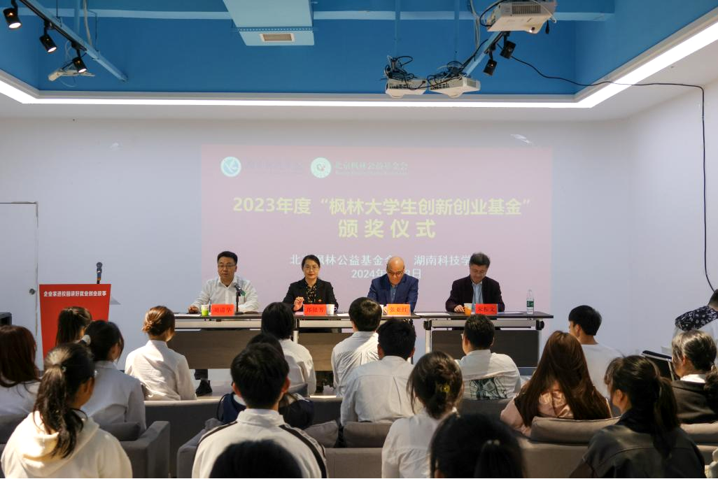 本网讯 为贯彻省委、省政府关于推进“校友回湘”工作的决策部署,落实省教育厅“企业家进校园讲好就业创业故事”活动部署要求,营造浓厚创新创业氛围,4月3日下午,beat365官网举行“枫林大学生创新创业基金”颁奖仪式暨企业家进校园讲好就业创业故事活动。beat365官网77级校友、北京枫林公益基金会会长张亚红,副校长郑银芳出席。