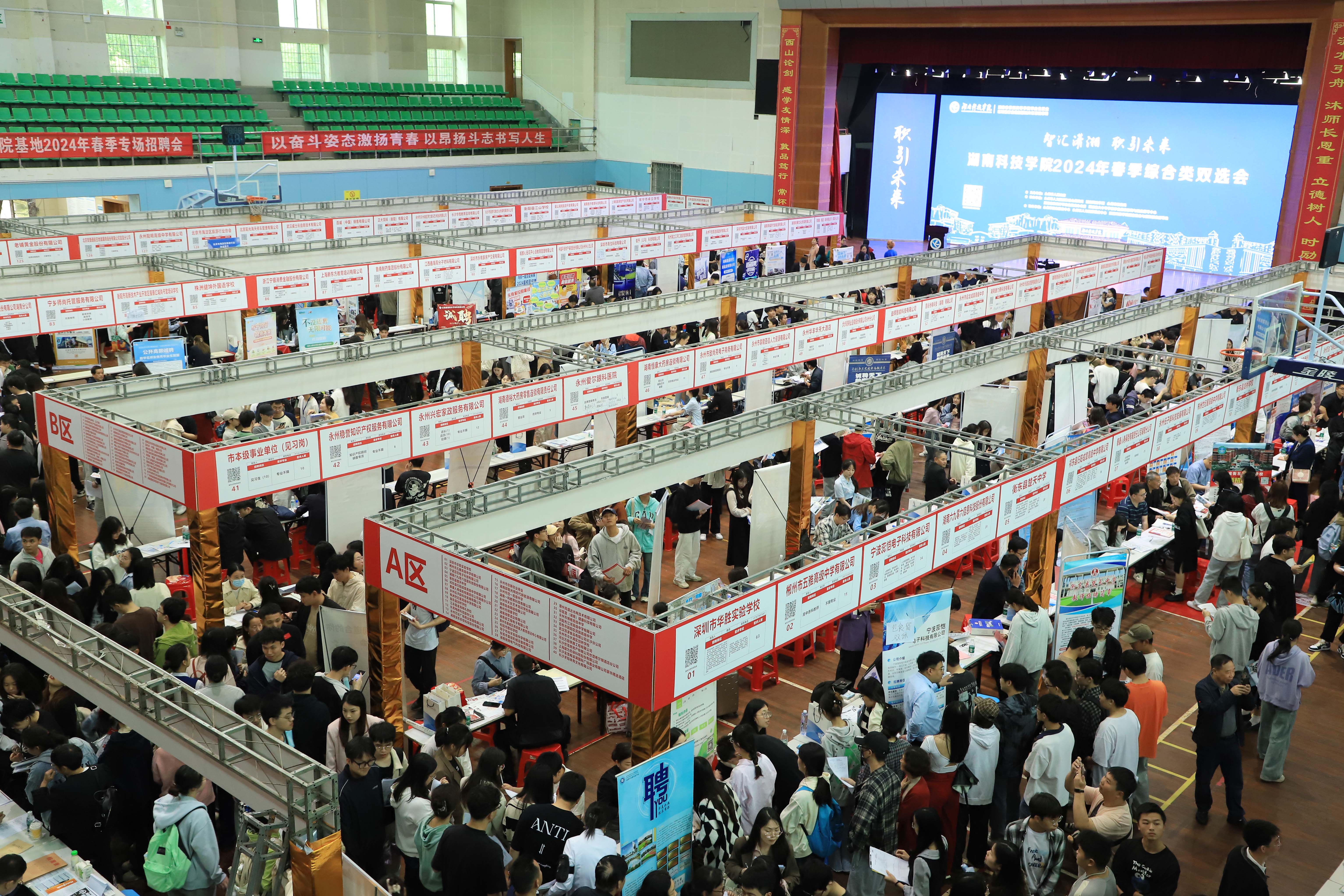 本次双选会邀请了来自省内省外的216家用人单位参会,其中既有学校“访企拓岗促就业专项行动”引进单位,也有校地校企战略合作单位、科研合作单位和校友单位。招聘岗位涵盖教育教学、信息技术、建筑地产、交通运输、食品安全等多个行业领域,为毕业生提供就业岗位7000余个,岗位需求实现学校全部学科专业全覆盖。