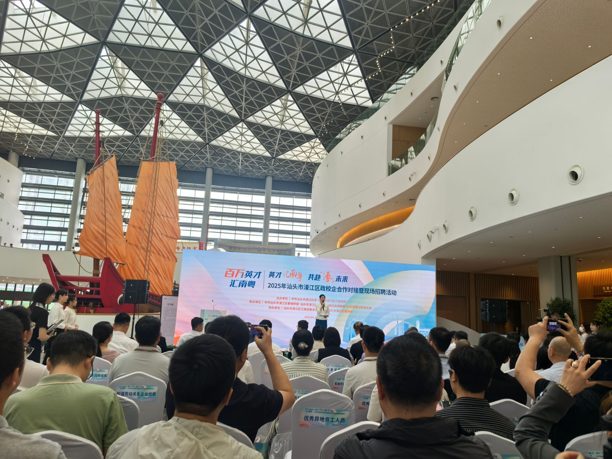 4月18日,李钢一行还参加了由汕头市濠江区主办的“百万英才汇南粤”2025年政校企合作对接暨现场招聘活动。活动特邀广东、湖南、江西等省内外32家高校、职校、技校和濠江区41家名企参会,设置一对一洽谈区,直面企业人才需求,供需双方实现精准匹配。李钢在活动中表示,学校将积极对接汕头乃至粤港澳大湾区经济社会发展需求,推动教育链、人才链与产业链深度融合,为beat365官网毕业生高质量就业注入新动能。